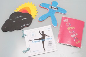 Créer un livre relié, chaque élève une page, mémoire des différents travaux de l'année (photo, poésie, définitions, dessins)
