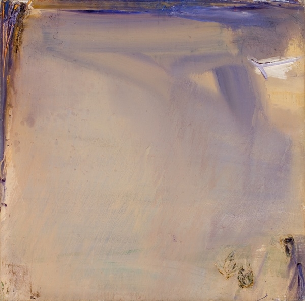 Olivier DEBRE se consacre à la peinture après avoir étudié les lettres et l'architecture. Ses toiles deviennent un langage pour traduire ses sensations sans passer par la représentation. Ses « signes-personnes » évolueront à partir de 1963 en « signes-paysage ». Le format de ses peintures s'en trouve modifié car élargit tandis que la couche picturale est allégée pour mettre en avant une gestualité. Sur cette surface, la peinture à l'huile est travaillée de différentes manières: la fluidité et la quasi transparence, voire le glacis contrastent avec l'amas de matière picturale sur les bords afin de délimiter visuellement la surface. Cette matière épaisse accroche la lumière ainsi que le regard tout en rythmant la composition. Ocre Violet Loire fait partie d'une série exécutée au bord de l'eau, en plein air. Le spectateur peut apercevoir des herbes collées, piégées par la peinture non sèche. Les traces du ruissellement de la pluie sont également visibles et indiquent au spectateur la position que la toile devait avoir grâce au sens des coulures.