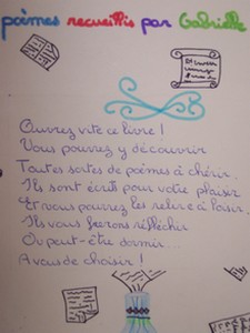 Ces anthologies ont été réalisées tout au long de la séquence sur la poésie et ne sont pas achevées puisque les élèves peuvent les poursuivre au troisième trimestre avec, par exemple, la séquence sur la fable.