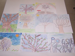 arbre à poésie 1 Deux classes de 5ème ont travaillé sur des « arbres à poésie ». Ils ont d'abord dessiné des arbres sur feuille. Ils devaient intégrer à leur travaux des citations portant sur la poésie, sa musicalité, et sa couleur.