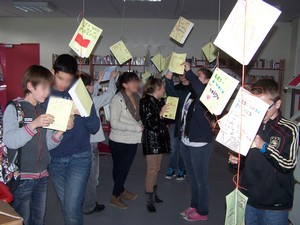 Des classes de 6e et de 5e ont préparé et animé le Printemps des Poètes. Réalisation d'anthologies et d'arbres à poésie, concours d'écriture poétique, sous la conduite de Mme Moreau, professeur de Lettres, de M. Izaute, professeur d'Arts plastiques et de M. Rondot, professeur documentaliste.