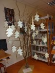 Un arbre à poèmes a été installé au C.D.I. avec la complicité du professeur-documentaliste Mona Le Floch : les élèves devaient inventer un nouveau nom pour cette nouvelle espèce d'arbre. Un concours a récompensé le meilleur néologisme, le vote étant autorisé à tous ceux qui avaient accroché une feuille à l'arbre. Pour tout le collège, élèves et adultes, l'arbre a également accueilli des feuilles à couvrir de poésie . Sylvie Brugnot a invité ses élèves à « saturer » le collège de poésie : apparition des phrases poétiques à l'ouverture des sessions informatiques, vers écrits sur les vitres au feutre lavable, banderole devant le C.D.I. à réaliser avec une liste de vers donnés par l'enseignante, poèmes rédigés par les élèves saisis, imprimés, plastifiés, découpés et piqués sur un cure-dents ...sur les desserts du self !
