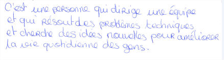 Les jeunes filles ont reçu à leur arrivée un « goody » (petite trousse avec les logos de s associations participantes) ainsi qu'un flyer de la manifestation, un document présentant les marraines et leur parcours et une fiche avec une unique question, « C'est quoi une ingénieurE ? », à laquelle elles devaient répondre avant le début des présentations. Les réponses les plus fréquentes ont été les suivantes :