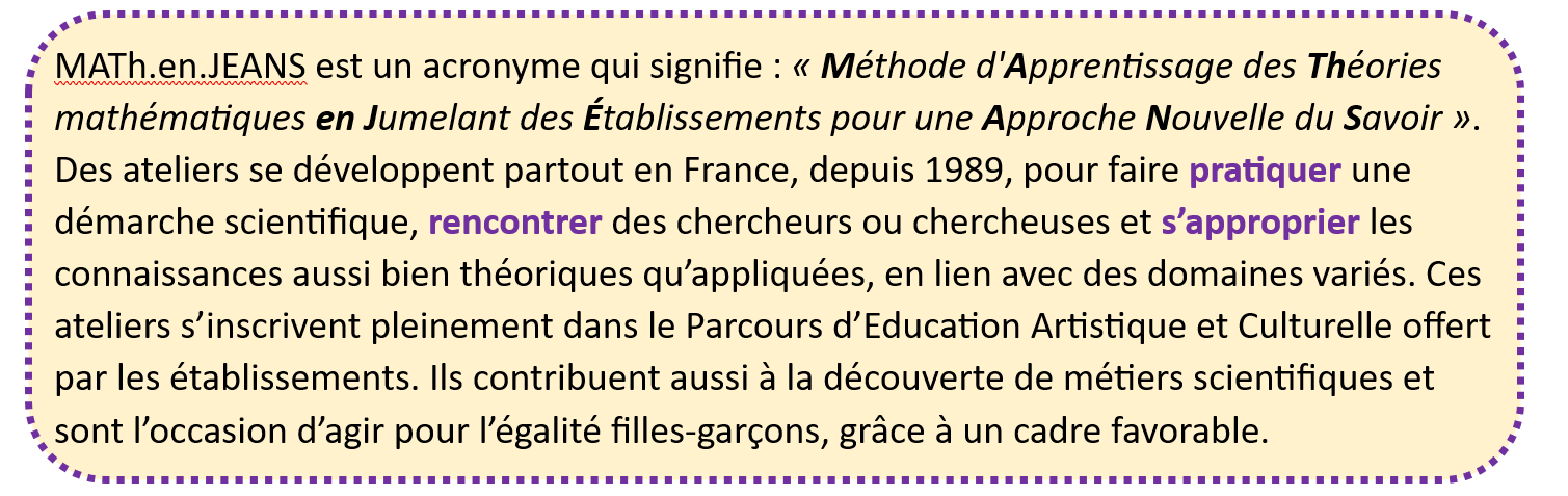 mener des projets EAC en lien avec les ateliers MATh.en.JEANS en collège et en lycée