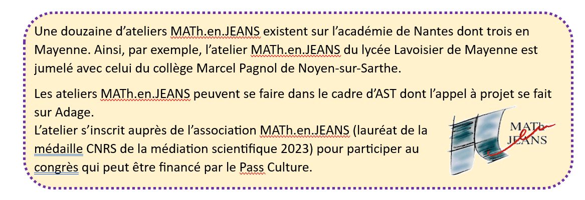 Les ateliers Math.en.JEANS de l'année scolaire 2023-2024.