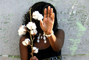 Pressentir, entrevoir, approcher le mystère blanc. Orchidée? mais non, coton ! Même le titre le dit. Quel est donc ce type qui veut Photographier ces yeux ? La main s'élève pour cacher Un regard, un visage. Mais peut-être est-ce un salut ? Dis-nous, fille, ce que faire tu as voulu. Jean-Pierre M. Halte ! Ouate. What ? Contre le mur l'ébène d'une chevelure. La blancheur d'un bouquet de ouate. What ? Halte ! Main d'ébène brandissant la fleur reine. Halte ! Chevelure. Main. Elle ne veut rien. Anita |