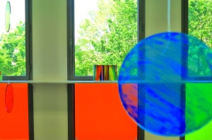 Ces ronds sont ensuite suspendus lors du vernissage de l'exposition. Chaque spectateur est invité à regarder à travers pour une nouvelle vision du monde !