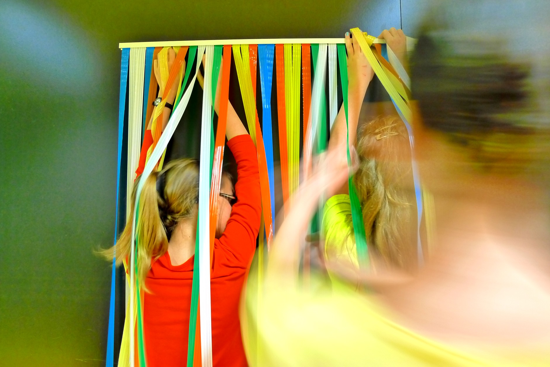 La force architecturale du bâtiment a servi d'assise à tout un champ d'explorations créatrices. Prédominance et immersion de la couleur, analyse des rythmes polychromes. Travail autour de la photoluminescence. Chacun a tenté de trouver sa place et de se sentir investi dans cette écriture architecturale singulière.