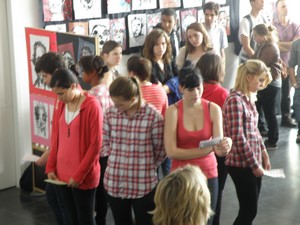 A l'occasion de ce vernissage, neuf élèves volontaires, issus d'une classe de seconde, ont offert une performance vocale. Ils avaient préparé des lectures à voix haute avec Margot Châron, jeune comédienne talentueuse que l'on voit régulièrement dans des lectures publiques sur la scène mancelle. Les textes d'Antonin Artaud, les poèmes d'Anna Akhmatova ou Paul Celan choisis par les élèves sont venus interpeller les spectateurs.