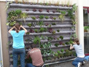 La dernière activité a été la végétalisation effective du mur. La plus grande partie des végétaux a été achetée au lycée agricole du Fresne à Angers qui possède une jardinerie.production et valorisation