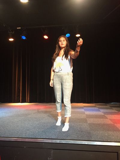 Au lendemain de la représentation du spectacle d’Anaïs Allais, offert par le Grand T, la classe de 1L2 du lycée Léonard de Vinci de Montaigu se retrouvait pour la première fois sur le plateau pour un retour sur le spectacle destiné à partager et prolonger l’expérience par le corps. A proximité, ardoises et feutres.