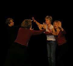 Théâtre-image : Un partenaire fait un "Arrêt sur image" pour traduire une action. Un autre arrive et adopte lui aussi une attitude figée en corespondance. Puis un troisième...
