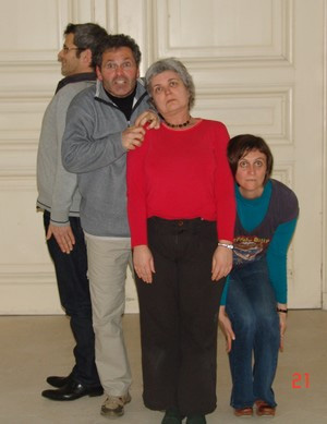 B : J'ai voulu lui montrer l'Italie, des couleurs, le relief, des détails, des angles de vue, lui montrer autre chose que les tableaux. J'ai voulu une confrontation directe avec les statues. J'ai voulu la faire bouger, la choquer, la dérouter en lui faisant perdre ses repères. J'ai voulu l'étonner, la surprendre, la faire voyager. Bbis : Bleu Jaune poussin Transparence : la verrière La cruche tombe attention ! Un vieux Florentin me toise Nez à nez avec une demoiselle Se retrouver dans les délices de Pompéi Regarder une demoiselle regarder un peintre devant une peinture J'ai le nez collé sur un carnet de croquis. |