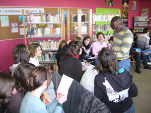 - Contact établi avec l'artiste Insa Sané (écrivain slameur) par l'intermédiaire d'une librairie spécialisée (Récréalivres Le Mans).