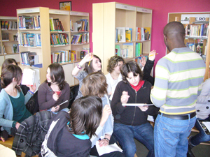 - Origines du projet : recherche conjointe entre le CDI du collège et la médiathèque pour mettre en place une animation commune à l'occasion du Printemps des Poètes 2010.
