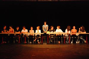 Un temps d'échange sur le spectacle, avec prise de notes par deux ou trois "secrétaires" volontaires.