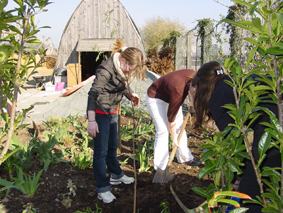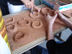 Photos : les élèves réalisent des coupelles en terre destinées à recueillir pétales et graines, tressent des branches pour en faire des mobiles, étudient végétaux et lieux d'implantation possibles pour leurs réalisations dans le Jardin étoilé.