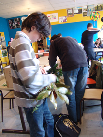Au mois de décembre les élèves ont réfléchi à des réalisations qui iraient dans le Jardin étoilé. L'idée, en accord avec l'artiste, était d'imaginer des réalisations plastiques, objets ou volumes, sur la thématique du vent et avec des matériaux naturels, pouvant s'installer et s'inscrire tout naturellement dans la Jardin conçu par Kinya Maruyama.