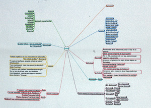 La carte heuristique réalisée lors de la séance précédente sert de « banque d'idées », les élèves s'y référent pour enrichir leur texte.