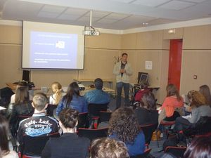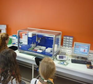 Les élèves ont ensuite pu assister à deux conférences dans le bâtiment de l'IRIS (Institut de recherche et d'ingénierie en santé) : Alain Morel est intervenu concernant la médecine personnalisée et Patrick Saulnier au sujet des nanomédicaments. Ils ont ensuite pu visiter les laboratoires de microscocopie et d'analyses cellulaires et moléculaires.