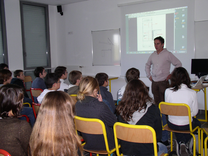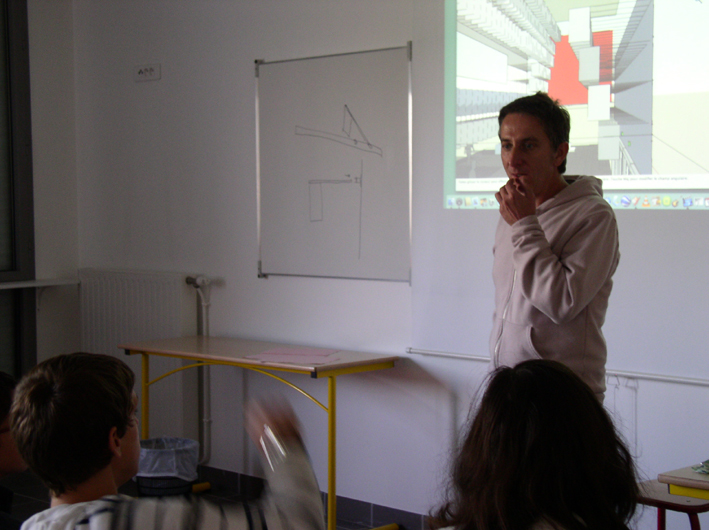 La rencontre se termine par la présentation sur écran de plusieurs oeuvres de l'artiste qui explique aux élèves sa démarche et le rapport entre l'oeuvre et son lieu dans le cadre d'installations ou de performances...