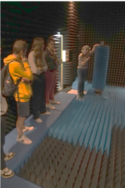 Rencontrer : les élèves interagissent avec l'IETR en amont de la Fête de la science. Ils participent à un workshop dans les locaux de l'IETR à Polytec Nantes. Ils visitent la chambre anéchoïque de caractérisation d'antennes. L'antenne mobilisée sur le stand du lycée Livet a été modélisée dans cette installation scientifique.