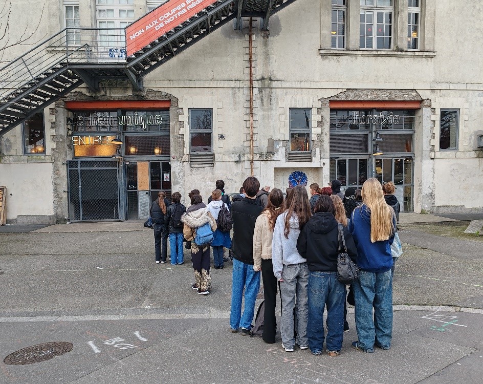 Le lendemain, grâce au partenariat avec le Lieu Unique, les élèves de terminale spécialité et leur enseignante Mme Benoid ont eu la chance de faire un double atelier sur place avec le scénographe Nicolas Boudier et le comédien Vincent Hermamno. Ce n’était pas la première rencontre, puisque lors de l’année de première, ils avaient pu assister et participer à une sortie de résidence à la Libre-Usine pendant laquelle ils avaient expérimenté certains dispositifs dramaturgiques, et découvert les premières ébauches du spectacle.