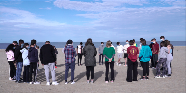 Le travail de création initialement prévu dans un studio de danse a pris place dans différents espaces du collège (cour, foyer, couloirs, escaliers, cuisine de SEGPA…) ainsi qu’à La Bernerie en Retz. Ce fut un saut vers des espaces plus inhabituels qui a aiguisé leur créativité et leur a permis de travailler la coopération en autonomie en s’appuyant sur les matériaux traversés. L’ensemble des compositions a été filmé par la réalisatrice Chrystel Jubien et une projection a pu se faire au collège en présence d’un parent par élève.