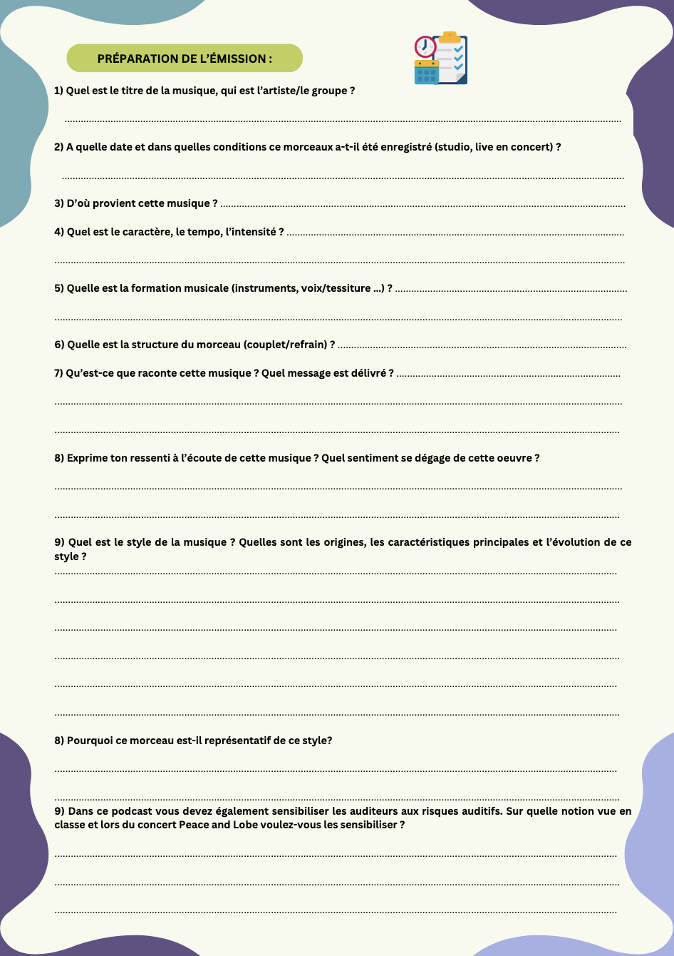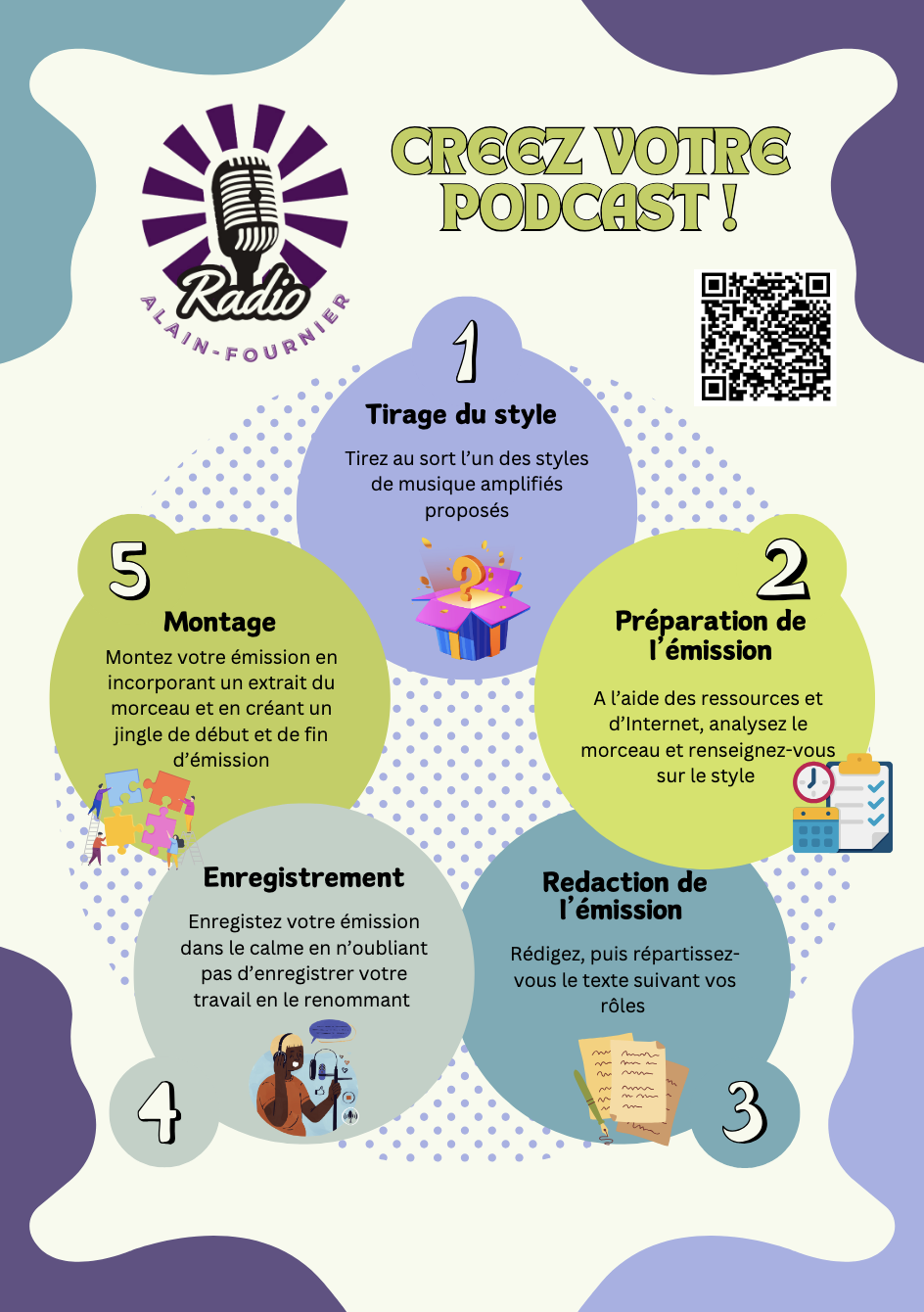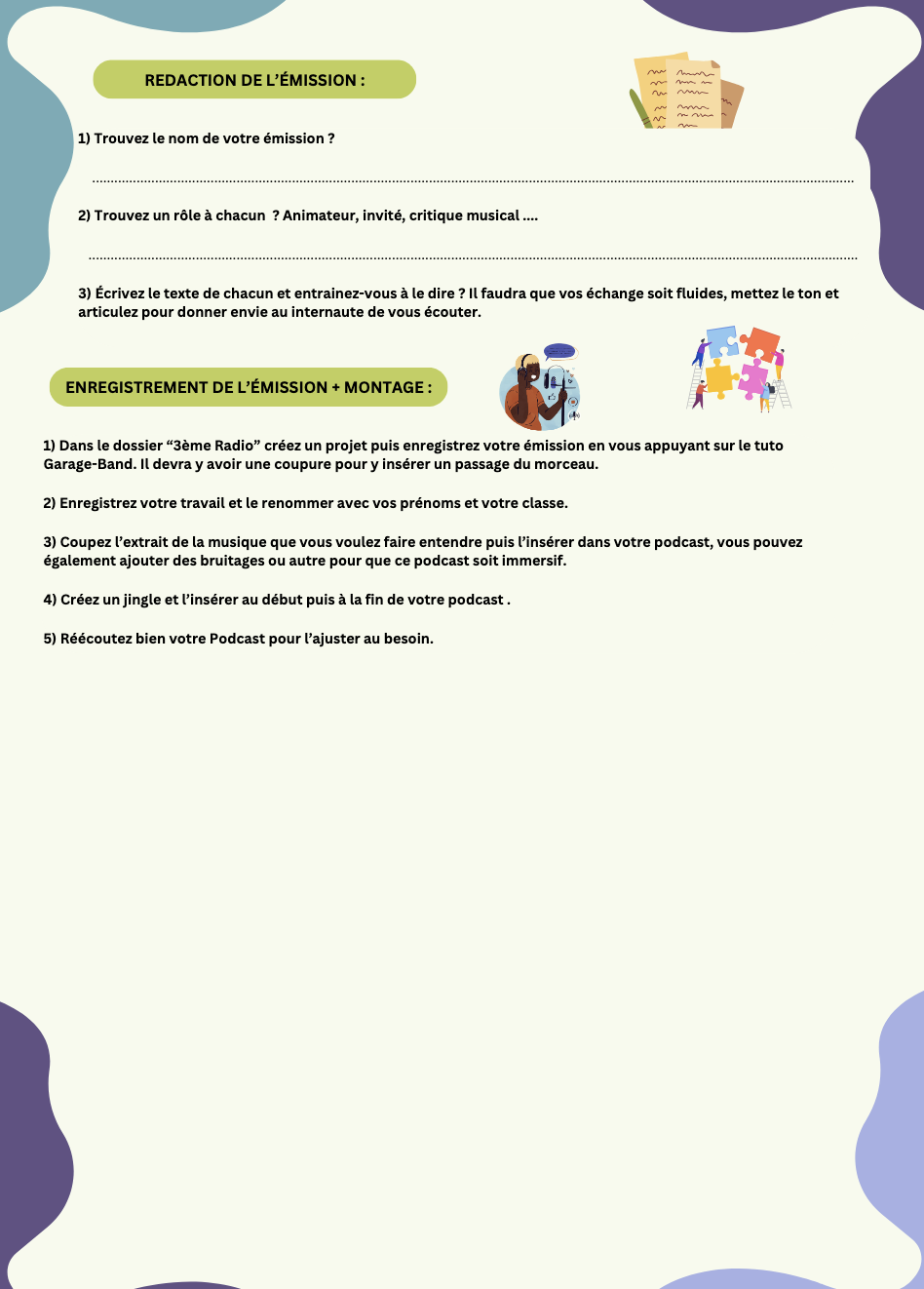 Suite à cette expérience, les élèves ont travaillé en éducation musicale sur un projet de Web radio. En groupe, ils ont créé un podcast mettant en avant un style de musique amplifiée et une œuvre imposée.