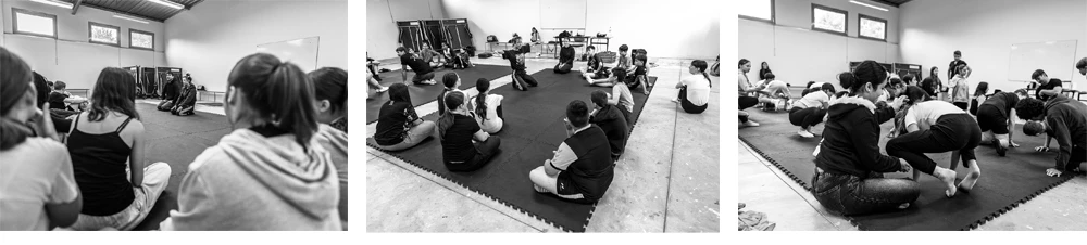 Les élèves sont conviés, à travers la pratique et les rencontres, à questionner la création comme processus et le corps comme langage artistique.