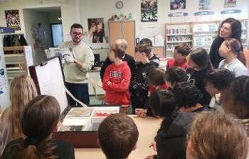 L'artiste Antoine Caclin est venu rencontrer les élèves une première fois en mars. A cette occasion, il leur a présenté son travail, puis différents livres d'artistes issus d'un coffret emprunté au FRAC, afin de leur donnant un avant-goût du projet qu’il souhaiterait construire avec eux.