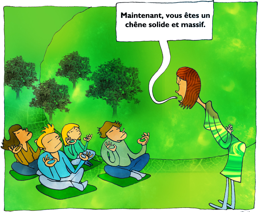 L’expérimentation par le corps permet de créer des images mentales, de mieux visualiser des scènes en les ressentant. C’est un outil précieux pour travailler la compréhension de texte. La professeure prépare sa séance en pensant l’incarnation du récit par le corps. “Il s’agit d’un travail d’imprégnation du texte”, précise-t-elle. Dans le cadre d’une période sur les fables de La Fontaine en sixième, elle a consacré plusieurs séances à la lecture et à la mise en scène du texte “Le Chêne et le Roseau”. Lors de la première séance, après la découverte du texte et quelques premiers échanges sur sa compréhension, elle a proposé aux élèves de vivre la fable en expérimentant les sensations des deux arbres. Ici, comme souvent chez La Fontaine, le plus fort n’est pas celui que l’on croit. La fable évoque la condescendance du chêne, solide et massif, à l’égard du roseau, fin et d’apparence fragile. Au final, le vent déracinera le chêne et fera seulement plier le roseau. L’enseignante propose aux élèves une succession de postures d’arbres qui leur permettent par exemple de ressentir par le corps les racines du chêne qui ne peut pas bouger, la souplesse du roseau et l’intervention du vent qui souffle, via des exercices de respiration. Concentrés sur la voix comme sur leurs sensations corporelles, les élèves parviennent à un second degré de compréhension du texte. L’activité facilite aussi le travail de mémorisation à venir grâce aux souvenirs du corps et aux images mentales associées. Lors de la séance finale, les élèves proposent une mise en voix du texte mémorisé et une petite mise en scène, en réinvestissant les postures d’arbres et le souffle du vent. “La relaxation transforme la personne, explique l’enseignante. L’élève part en voyage imaginaire, il ressent des émotions, visualise des situations, des lieux… Il trouve alors des idées, il est donc en situation de réussite”. Ce type d’activité est également approprié pour préparer un exercice d’écriture. À l’issue de l’exercice, les élèves regagnent leur place, notent toutes les idées qu’ils ont eues. Ils écrivent volontiers et rapidement, fini le syndrome de la page blanche, place à la créativité. “On gagne aussi en qualité d’écoute lors de la lecture des textes des pairs”, note l’enseignante. C’est un moment de partage attendu qui suscite l’intérêt de tous.
