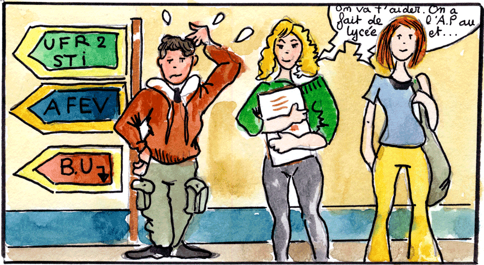 • Un étudiant en cours de réorientation après une licence 1 de langues, littérature et civilisations étrangères espagnol (aussi en cours de service civique à l'AFEV)