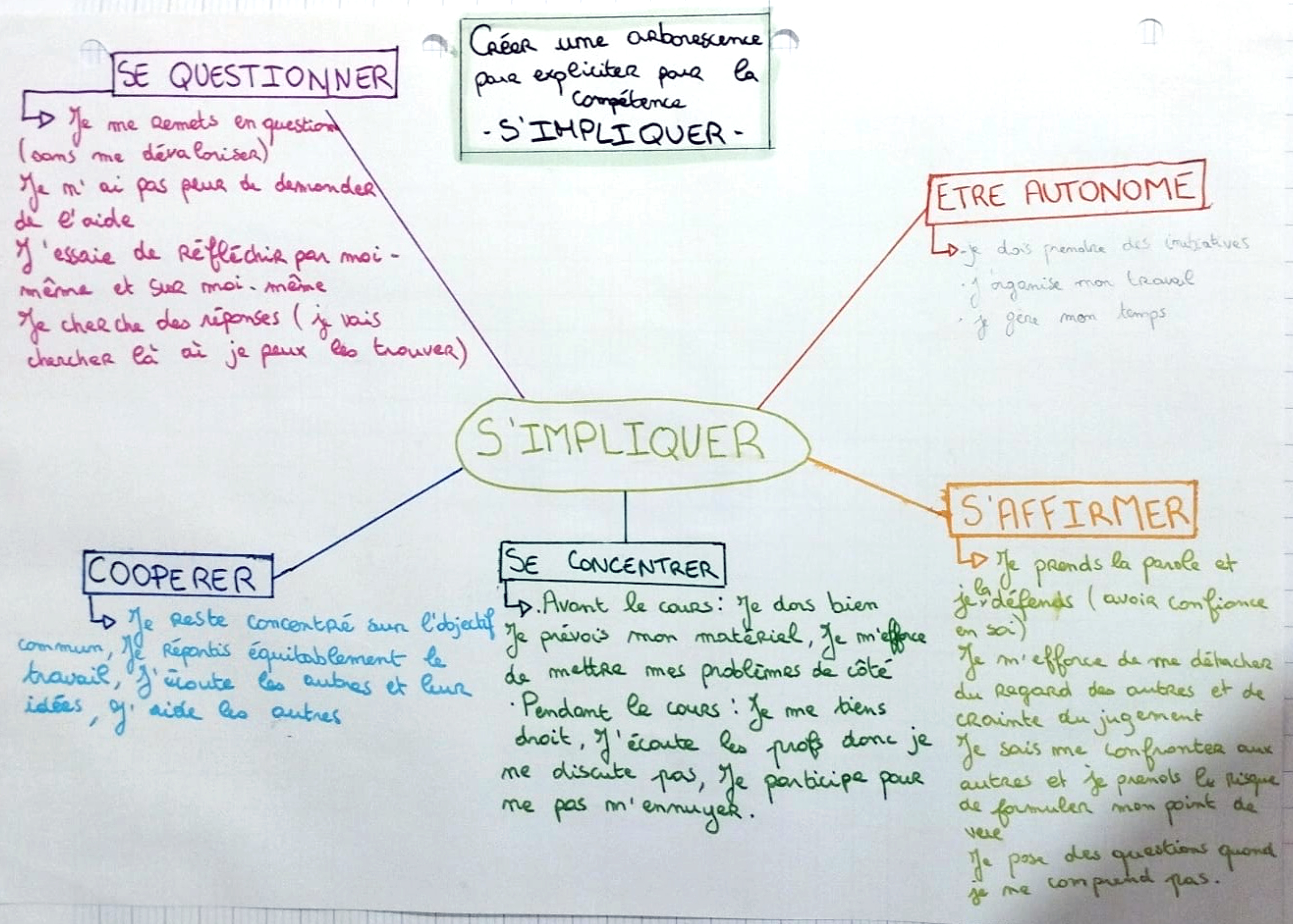 Afin de relier ce parcours individuel et collectif aux compétences disciplinaires, les deux professeurs les sollicitent donc pour construire une carte mentale de l'implication.