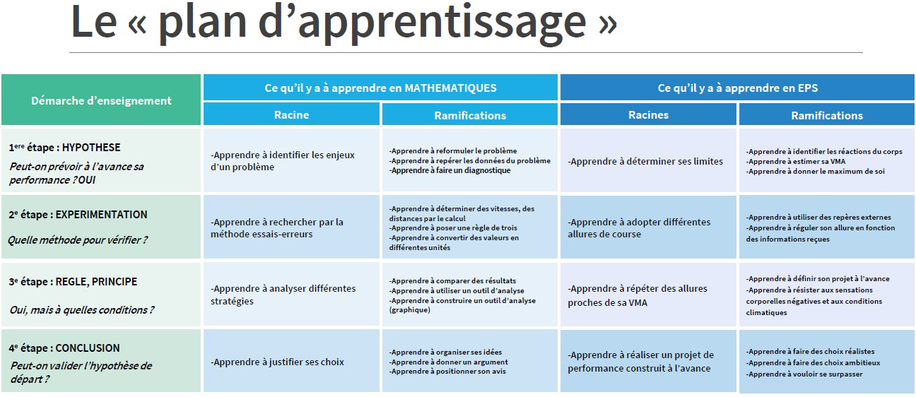 Les deux enseignants ont en effet pris conscience qu’il faut éviter l’écueil de la juxtaposition (de disciplines, de micro-compétences, …) : l’essentiel réside dans les passerelles entre les savoirs. "Il faut mettre en interaction tous les éléments abordés en EPS et en maths", précise Vianney Thual, qui ajoute que "concrètement, en EPS, apprendre à effectuer un service en badminton ne permet pas de savoir réaliser un amorti ou tout autre geste technique". mais cet apprentissage est directement relié à d’autres compétences.