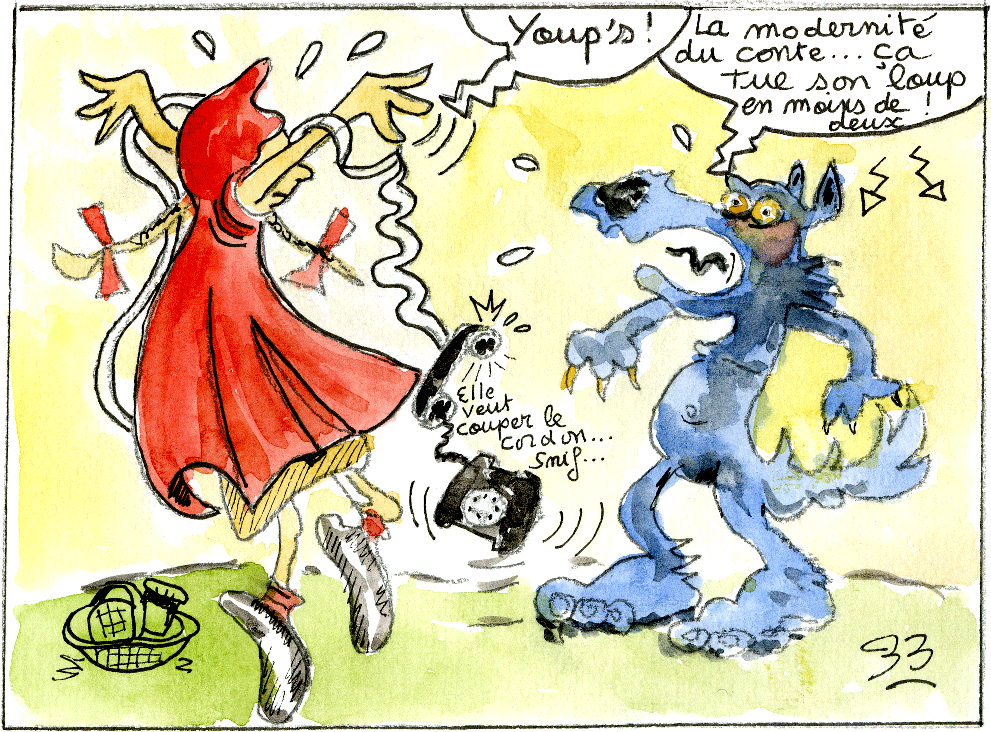 Peut-on explorer les arts du spectacle sans y assister? Les élèves vont donc voir dix spectacles dans l'année; du théâtre, bien sûr, mais aussi du cirque, du conte, de la marionnette, du clown (voir annexe). Les retours sont l'occasion de se construire une culture du spectacle vivant, d'aiguiser son regard de spectateur, de dépasser la description vague et l'appréciation générale. Ainsi quand l'enseignante demande de rapporter une image marquante du spectacle Faim de loup (Cie Graine de Vie / Ilka Schönbein), un élève se contente de la formulation vague suivante : "Je me souviens que le chaperon rouge avait un téléphone". Or personne ne peut alors se représenter l'image du spectacle, ni en tirer la moindre interprétation! Une reformulation un peu plus travaillée est ensuite exprimée : "Je me souviens que le chaperon rouge prenait le téléphone blanc pour répondre à sa mère, et s'empêtrait dans les fils qui s'enroulaient autour de ses jambes et l'emprisonnaient". Ensuite le groupe a pu partir de là pour interpréter et dire que c'est la mère qui téléphone (ne pas l'oublier) et que probablement, l'image du chaperon empêtrée dans les fils blancs du téléphone évoque un chaperon prisonnier des liens puissants tissés par sa mère... Quand les élèves n'arrivent pas à formuler, on peut passer aussi par des souvenirs muets d'images que chacun fait avec son corps (tous étant en cercle), qui permettent d'aller vers une précision de l'image, car souvent le corps se souvient mieux ! Le groupe est souvent divisé en sept sous-groupes ayant chacun un objectif différent : le jeu, la scénographie, la lumière, le son, les objets... Les remarques sont alors plus précises et plus pertinentes : "le chaperon portait les chaussures de sa mère", cela peut exprimer son désir de grandir, de séduire, mais cela peut aussi le mettre en danger... Le théâtre se prête plus facilement qu'un texte à ce type d'analyse. Le retour de spectacle est aussi l'occasion d'élargir les référents culturels et de faire le lien entre les choix esthétiques de la mise en scène et les grands mouvements artistiques. Faim de loup a été l'occasion de découvrir la peinture expressionniste allemande. Un journal de bord est tenu par chaque élève, où il consigne ses réflexions et ses appréciations après les spectacles (mais aussi sur les séances de cours). Il est nourri par un florilège de citations. "Nous sommes de l'étoffe dont sont faits nos rêves" (Shakespeare) illustrait bien ce spectacle et les propos de la comédienne : le lecteur ou le spectateur du conte est formé de tous les personnages évoqués : loup, petite fille, grand-mère, mère... tous joués par le même acteur et ses multiples masques !