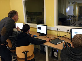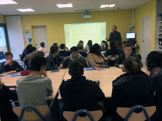 Convaincu du bien-fondé du projet, l’enseignant réussit à impliquer activement ses équipes et à obtenir que ce projet devienne celui de ses élèves. Ainsi dépossédé de son projet par les élèves qui se sont approprié cet objet de savoirs, il provoque une opération pédagogique qui rejoint le concept de « dévolution », défini par Guy Brousseau 1. Tout au long de la séance, Patrick Richard garde aussi un œil sur son smartphone, car il lui permet de connaître à tout moment l’avancée de la réflexion de chaque équipe et d’intervenir dès que nécessaire auprès d’un groupe en demande. Toute séance répond à l’urgence des projets engagés : ceux des élèves et celui de l’enseignant ; d’où le rythme soutenu des cours. Chacun sait ce qu’il vient faire en technologie. Chaque séance est donc un temps de réflexion et de production qu’il faut optimiser.