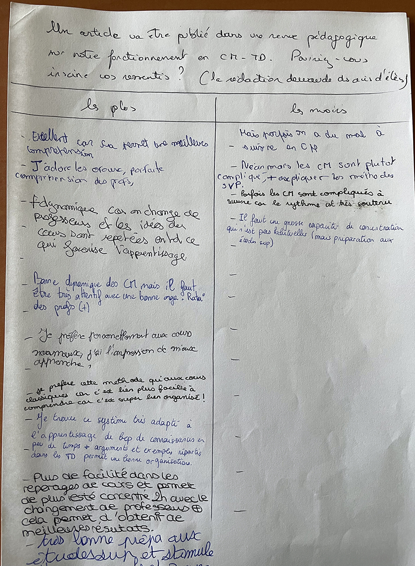 des CM aux heures de cours avec le professeur référent