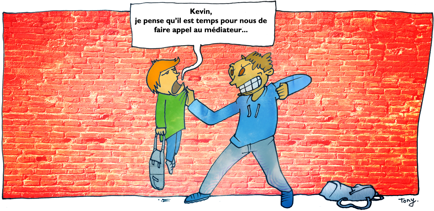 ans les établissements où les incivilités et les violences sont nombreuses et en augmentation, le recours à la médiation par les pairs est devenu fréquent. C'est le cas au collège Debussy où la direction estime que le climat scolaire est fragile voire dégradé. En effet, il y a beaucoup de petits conflits et disputes entre élèves car il y a des soucis d'incompréhension, de langage, de culture. Ces micro-violences2 (vol de petit matériel, bousculade, insulte…) dégénèrent souvent en disputes et bagarres plus conséquentes, ce qui détériore très nettement le climat scolaire au quotidien et engendre très souvent des problèmes plus graves. La médiation par les pairs trouve ainsi sa place dès qu'une situation conflictuelle de ce type naît entre deux élèves. Elle est menée par des collégiens comme Anna et Romain, formés à la médiation par l'AOREVEN (Association régionale des œuvres éducatives et des vacances de l'Éducation nationale) qui vont chercher à trouver une solution "gagnant-gagnant", c'est-à-dire favorable aux participants. L'écoute, la parole et le dialogue sont les maîtres mots pour la résolution du conflit. Elle apparaît comme une alternative pour éviter des mesures disciplinaires plus lourdes. Elle constitue donc un véritable outil de prévention contribuant à l'apaisement du climat scolaire. Aussi, elle permet de développer la culture de la médiation sociale. Le collège devient alors un espace privilégié de l’apprentissage du "vivre ensemble" et, donc, un lieu de socialisation où l'on tente de faire comprendre aux élèves qu'en cas de conflit, on doit réagir autrement que par la violence physique et verbale.