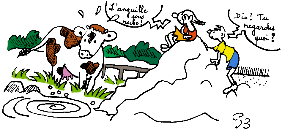 Plutôt que "j'ai vaincu", "j'ai compris" serait plus approprié. Pour comprendre, encore faut-il mesurer l'incompris. Ces différentes observations n'ont pas manqué de soulever des interrogations ; la comparaison a mis en lumière l'aménagement différent des territoires, certains devenus cultivables et d'autres non. La main de l'homme y est présente. Quel homme au fait ? Le fil de ce projet est aussi celui qui va permettre de remonter le temps. Deux lieux visités fournissent des indices précieux : l'abbaye de Nieul-sur-l'Autise et la petite commune de Triaize, sise sur un îlot rocheux. Les travaux de défrichement et d'assèchement ont été commencés par les moines, puis poursuivis sous Henri IV. Les hommes ont peu à peu gagné une terre fertile. Mais qu'en était-il avant ? On remonte ainsi le fil du temps jusqu'à la préhistoire. À part quelques îlots rocheux, comme Triaize, leur pays n'était qu'une vaste étendue d'eaux, de mer ou de crues. L'histoire explique l'espace, qui détermine aussi une certaine histoire. L'espace explique la faune et la flore qui le constituent. L'homme et les traces de sa présence s'expliquent dans l'espace... Tout se tient et tout est là, sous nos yeux, quand on sait regarder. Les CM2 élargissent le champ d'exploration. Si les CE2 se sont limités à la commune de Benet, si les CM1 ont découvert les marais, les plus grands poursuivent, comme l'eau, le chemin jusqu'à la mer (voir annexe). Océan, digues, portes à flots (sortes d'écluses de mer)... autant de nouveaux éléments à découvrir et comprendre. Pour rendre plus concret ce chemin, ils suivent la route de l'anguille. Ainsi, de fil en anguille...