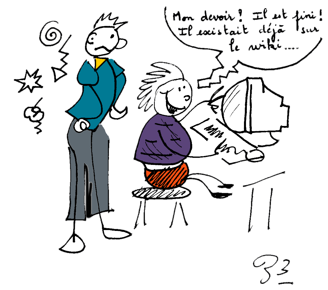Internet est progressivement devenu, pour tous, une "prothèse informationnelle". Dans l'exercice du métier d'élève, internet intervient notamment à travers des ressources qui servent à acquérir des connaissances, en complément ou en substitution de l'apport des enseignants. Dans un certain nombre de cas, cette prothèse facilite le travail scolaire dans un rôle d'assistance qui, auparavant, se faisait autrement (sources documentaires diverses ou aides aux devoirs trouvées dans la sphère familiale ou scolaire). Mais dans d'autres cas, les pratiques d'internet interrogent car, tel le copier-coller de devoir tout fait, elles vont jusqu'à dispenser l'élève de tout travail sans qu'aucun mode de régulation ne pose de limites à cette facilité. Ce fait est d'autant plus prégnant que parents et enseignants sont nombreux à ignorer cette possibilité, ou du moins, à agir comme s'ils l'ignoraient. Ces usages posent alors des questions de fond : du côté élève, c'est le sens du travail scolaire qui est en jeu, et en amont, la question de leur implication et leur motivation. Par un effet miroir, du côté enseignant, ce sont les finalités de leur métier qui sont interpellées.