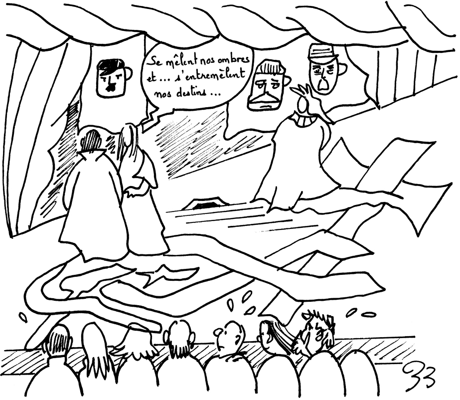 Revenons donc à notre projet théâtral 2007-2008. Enseignants et metteur en scène partagent un même objectif : mettre en jeu la question des mémoires individuelles et collectives liées aux traumatismes de l'histoire. Le projet théâtral commence à naître, entre France et Finlande, tout d'abord. Très vite, une rencontre, dans le cadre du festival de théâtre francophone à Pécs, amène le metteur en scène à envisager un pari un peu plus fou : intégrer le lycée Leowey de Pécs et sa section francophone et théâtrale dans l'aventure. Contact pris, pari tenu. Le projet se dessine ainsi : chaque groupe de lycéens va choisir dans son histoire nationale une période dont on ressent encore le traumatisme. Pour les Finlandais, c'est l'épisode de la fin de la Seconde Guerre mondiale où la nation, entre URSS et Allemagne, se retrouve amputée d'une de ses provinces, la Carélie. Les lycéens hongrois, avec leur professeure de théâtre, choisissent de travailler sur l'épisode de la révolution de 1956 et le rôle du dictateur Rakosi. Quant aux jeunes Français, ils choisissent de revisiter ces temps troublés où dénonciation des juifs et résistance bousculaient les vies, celles de jeunes et de familles comme les leurs. Il va sans dire que ces choix ont nécessité des compléments d'informations et recherches documentaires pour que chacun les partage et les comprenne. L'obstacle est bien identifié : pas question que trois nations s'affrontent sur scène, chacune avec son drapeau pour montrer son héroïsme. Ce sera donc à la mise en scène et au travail d'écriture qu'il reviendra d'assumer collectivement ces histoires, les mêmes en fait, celles d'une union en construction.