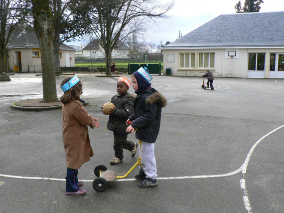 C'est ainsi que se déroulent quotidiennement les récréations à l'école maternelle de La Senelle. Cette école, située en REP (réseau d'éducation prioritaire), se trouve au confluent de quatre quartiers différents : Pommeraies, Pavement, quartier gare et centre-ville. À la sortie de l'école primaire voisine, les élèves peuvent se trouver dispersés sur au moins quatre collèges différents. De même, plusieurs centres de loisirs ou centres sociaux peuvent être considérés comme ceux du secteur de l'école, ce qui ne facilite pas les contacts pérennes. C'est bien un sentiment d'instabilité qui domine (les familles déménagent beaucoup), combiné à l'impression d'être situé sur une zone carrefour qui n'aide pas à construire une identité d'école. Pourtant, des familles sont fidèles à cet établissement qui, il y a quelques années, était considéré comme une école de centre-ville. Sylvie Rossignol-Saaïd, enseignante à La Senelle depuis de nombreuses années, accueille régulièrement en stage des anciens élèves. Le public est très hétérogène, à la fois sur le plan social, culturel et géographique. On y trouve aussi bien des familles des classes moyennes que des familles en grande difficulté sociale ou des familles d'origine étrangère, principalement issues du Maghreb ou d'Afrique noire. Un mélange parfois détonnant, qui a incité l'équipe pédagogique à travailler particulièrement les questions liées à la citoyenneté, à la construction de la posture d'élève et à l'articulation entre l'espace personnel de l'élève et l'espace collectif de l'école. Vivre enharmonie, faire de l'école le lieu du bien-vivre ensemble : ces objectifs passent par la mise en place d'un dispositif inventif et en constante évolution qui prend toute sa dimension sur la cour de récréation, espace de liberté, certes, mais aussi, du fait même du moindre contrôle des adultes et des multiples possibilités de rencontres, choisies ou non, d'apprentissage du vivre ensemble.