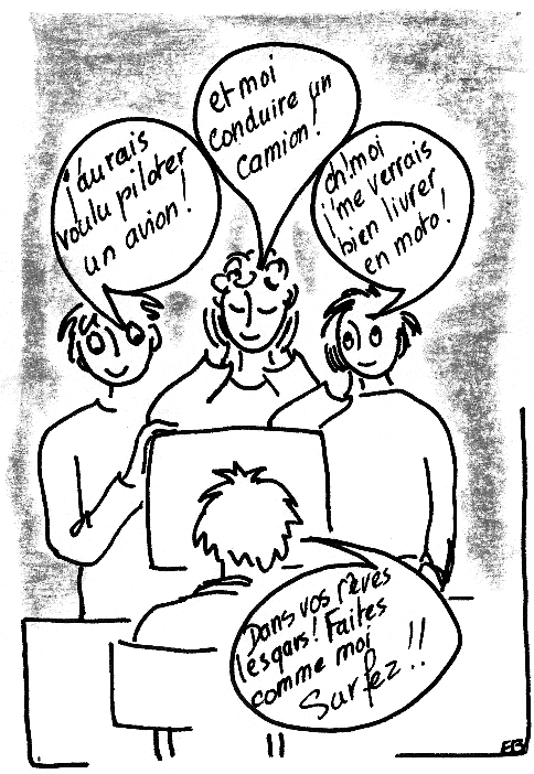 On pourrait citer bien d'autres exemples qui traduisent ce souci de varier les approches. Les élèves ont ainsi participé l'an dernier aux Olympiades des reporters. Par groupes, ils devaient réaliser l'interview d'un professionnel et construire un diaporama. Une équipe, qualifiée, est allée à Nantes aux finales nationales. Il fallait réaliser un reportage sur l'un des métiers, tiré au sort, présent sur le site de l'Olympiades des Métiers. Les gagnants partaient à Helsinki. Ce qui n'a pas nécessairement constitué une source de motivation, note L. Thinon, qui accompagnait les jeunes Luçonnais. En fait, ils étaient plutôt effrayés à l'idée de partir si loin, et ils n'en n'avaient, plus ou moins consciemment, pas envie. Alors ils n'ont pas donné le meilleur d'eux-mêmes. On en revient à notre leitmotiv : manque d'ambition, peur de l'éloignement, de l'inconnu... Et lorsqu'on demande à l'équipe éducative quel est finalement l'objectif essentiel de l'ODP, la réponse est unanime : il s'agit de faire découvrir tous les possibles, de montrer la large palette des formations, des métiers, des structures. Dans cette perspective, deux élèves vont chaque semaine au CDI pour réaliser une revue de presse. Aidés par la documentaliste, ils sélectionnent deux articles en lien avec le monde professionnel. Ils doivent déterminer dans quel axe se situe l'article (formations, métiers, organisations), son type (interview, enquête, reportage...) et en faire un rapide résumé. Le résultat est présenté au groupe le mardi suivant. Tout est fait pour que l'horizon des élèves s'élargisse progressivement. Ce qui se fait souvent par des recherches documentaires, en utilisant des médias variés. Pourtant, dès qu'on aborde une activité plus centrée sur l'écrit, le document à lire, les choses deviennent plus difficiles. Et ce n'est guère aisé non plus, pour certains élèves, de se projeter ainsi, ils restent dans une immédiateté culturelle, temporelle, géographique. Face à certaines activités, ils réagissent d'abord comme si cela ne les concernait pas.