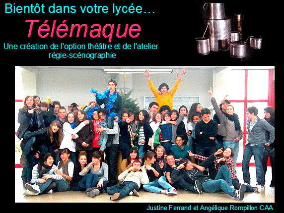 La question est simple : Comment contribuer à la réalisation de Télémaque (ainsi se nomme le projet de l'option) ? Les élèves font trois vœux, après une réflexion collective des pistes possibles, en indiquant les missions qu'ils aimeraient réaliser. Certaines relèvent de la communication, comme la réalisation des affiches, des programmes ou encore l'utilisation des nouvelles technologies. D'autres sont plus spécifiquement centrées sur l'artistique, comme la réalisation d'un catalogue de costumes ou la présentation de petites formes autour du thème (pour les portes ouvertes, notamment, ou sous forme de performances théâtrales). Finalement, les vœux s'orientent essentiellement autour de la communication. Des groupes sont constitués à partir de ces souhaits ; tous les élèves obtiennent satisfaction (voir annexe). Pour l'attribution de ces missions, les vœux d'orientation ont également été pris en compte lorsqu'ils étaient compatibles. Ainsi, par exemple, des élèves qui désirent s'orienter vers l'enseignement se sont vus attribuer la constitution d'un dossier pédagogique à destination des élèves de collège (deux des huit représentations sont scolaires, dans le cadre d'échanges avec deux collèges du secteur). Ce travail en autonomie est soigneusement jalonné par des échéances. Les élèves ont un planning et doivent produire des documents intermédiaires à intervalles réguliers. C'est autant une manière de vérifier le travail fourni que l'occasion d'apporter des conseils aux élèves ou de les ramener vers leurs contraintes et objectifs, le cas échéant.