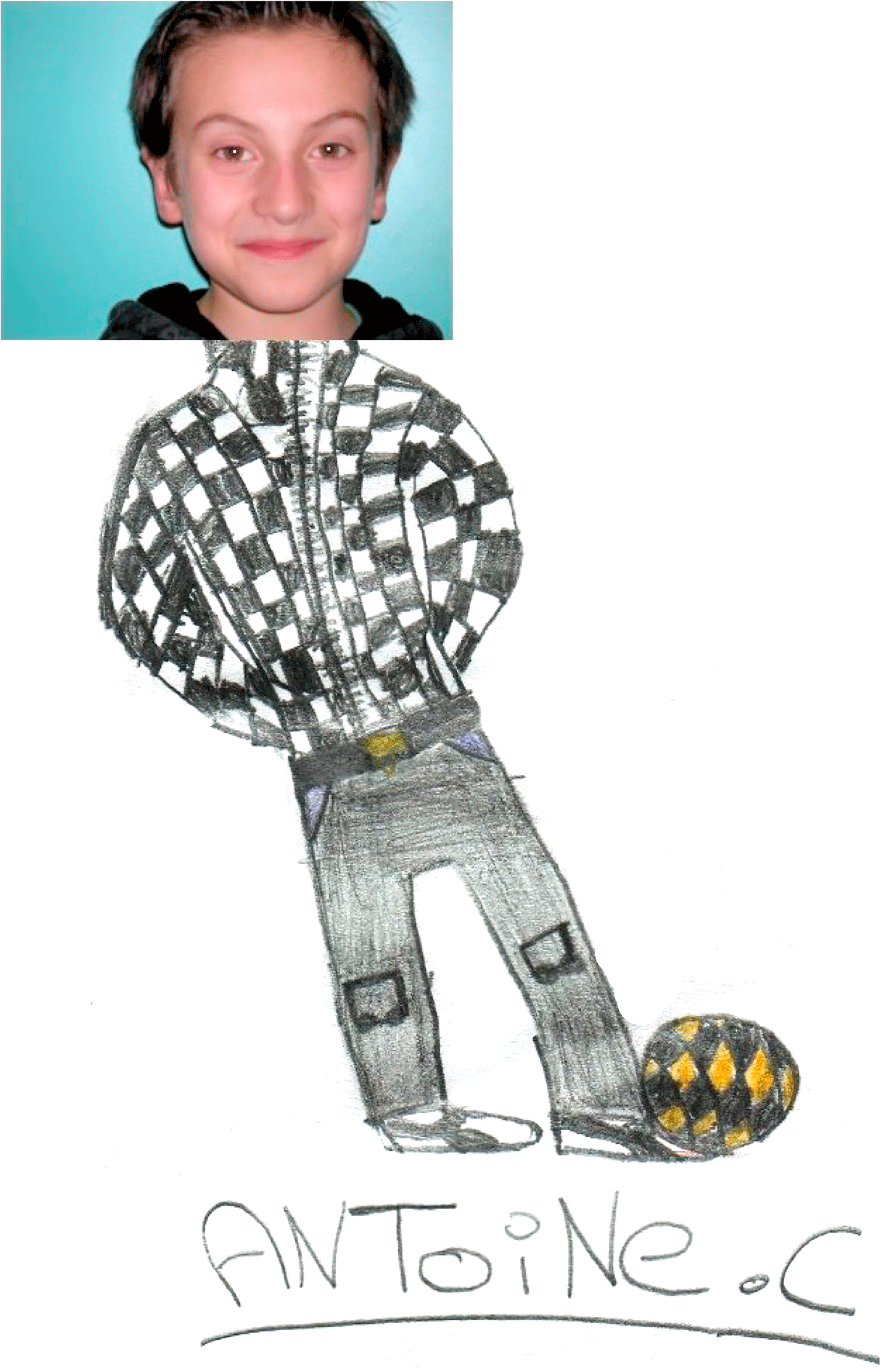 Pour rendre plus vivant l'apprentissage des langues vivantes, rien ne vaut des projets tels qu'un concours d'écriture de bande dessinée ou de marionnettes entre deux classes. Mais on peut aussi envisager une correspondance numérique comme eTwinning, site européen de jumelage électronique. Afin de favoriser les échanges pédagogiques, ce portail offre des outils et des ressources pour mettre en relation des établissements scolaires (1). Des enseignants lancent des appels à collaboration en formulant leur demande précise et une fois qu'ils ont trouvé des partenaires, le site leur dédie un espace virtuel d'échanges. L'initiateur du projet est maître d'œuvre, dans la mesure où ses modalités ne sont pas négociables. Ceux qui veulent y adhérer doivent l'accepter tel quel. En 2007-2008, l'école Pierre-Attelée et, en 2008-2009, l'école Paul-Fort, toutes deux sises à Saint-Brévin, se sont ainsi associées à deux écoles, polonaise et roumaine, autour d'un projet intitulé Le jeu des portraits. Dans les trois pays réunis, la langue anglaise constitue une langue d'apprentissage. La première étape consiste à échanger par voie électronique des portraits-devinettes. Chaque élève réalise une silhouette dessinée, numérotée et accompagnée de son prénom avec des vêtements inventés (voir ci-contre). La seconde étape réside dans l'élaboration écrite ou audio d'un autoportrait en langue anglaise. Les Polonais ont transmis des descriptifs audio tandis que les Français et les Roumains ont fait parvenir des devinettes en mots. Voici par exemple deux autoportraits écrits par deux élèves français à partir de dessins incluant une photographie les représentant (voir annexe). Le jeu entre les trois écoles consiste à associer chaque descriptif en anglais au dessin correspondant. Il s'agit donc, comme au Cluedo, de résoudre des énigmes en prélevant des indices afin de trouver le bon numéro. Dans le cas des autoportraits sonores et non visuels envoyés par les Polonais, les élèves français en ont décrypté le contenu à l'aide de notes. Très personnalisée, la prise de notes s'est imposée d'elle-même car il s'est avéré assez difficile pour eux de garder en mémoire ce qu'ils avaient compris et de s'appliquer en même temps à comprendre les informations complémentaires. À chacun sa stratégie pour reconnaître, à l'écoute, le dessin décrit. Par exemple, des silhouettes accompagnées de mots ont pu constituer une étape graphique vers la résolution des énigmes (voir ci-dessous). Enfin, chaque élève a choisi un correspondant par affinité. Ainsi, Adrian a opté pour Hadrien en raison de la proximité de leurs prénoms.