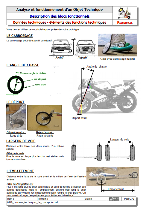 exemples du mini char à voile ou Défi air et du projet Tchou Tchou