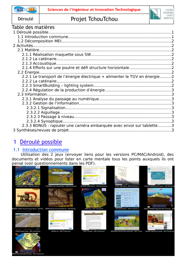 Le projet train, ou projet “Tchou Tchou” est quant à lui mené au lycée, en sciences de l'ingénieur et innovation technologique :