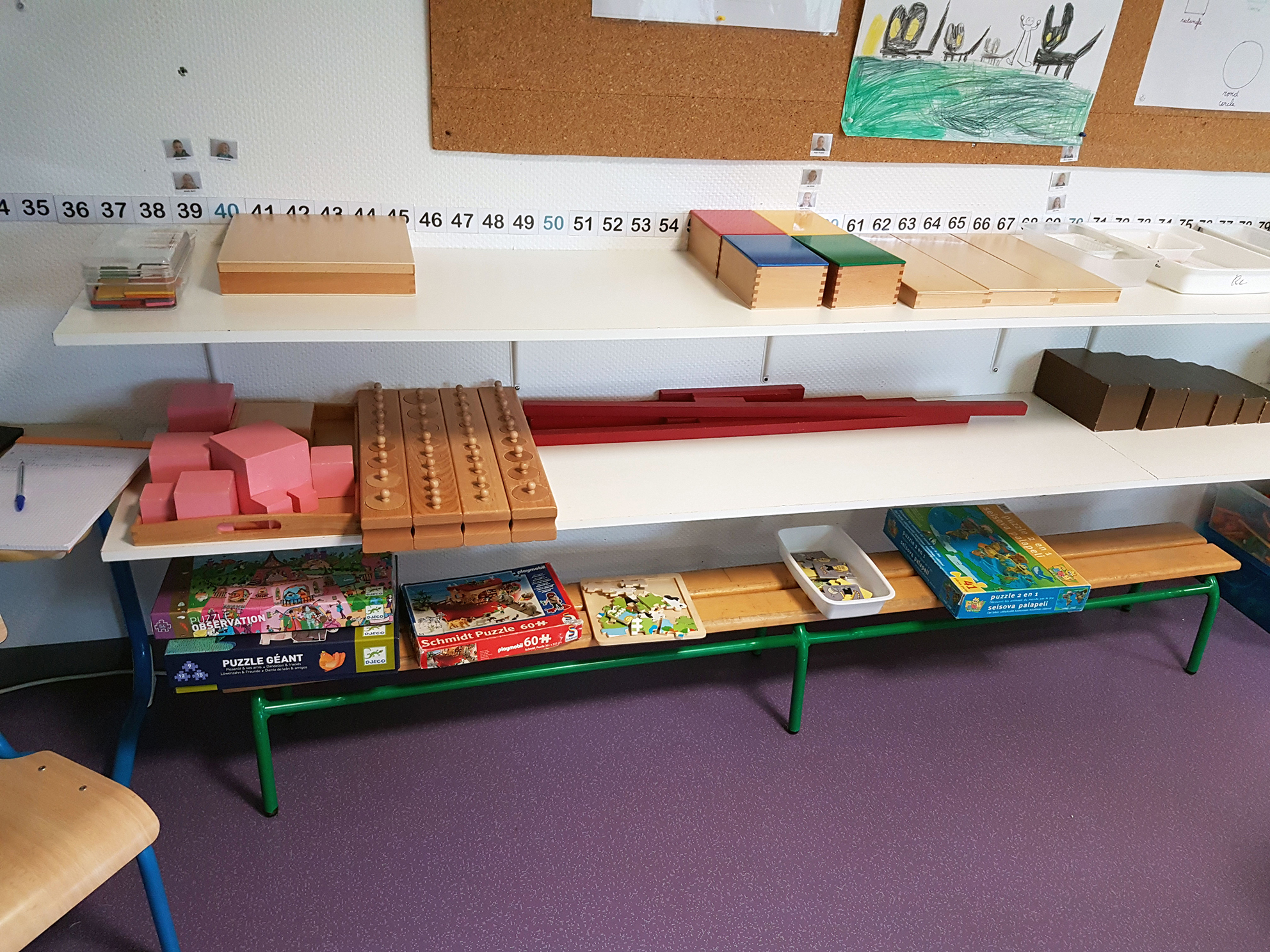 Sonia Lelièvre a rejoint ces prémices de réorganisation et a adhéré au projet de décloisonner et de répartir les niveaux scolaires, si bien qu’aujourd’hui chaque classe est composée des trois niveaux de la maternelle, et constitue donc ce que l’on appelle une classe enfantine. Il a fallu ensuite s’interroger sur l’organisation de chaque salle de classe et sur le matériel à mettre à disposition. Sur ce point, l’aide de la municipalité et celle de l’association des parents d’élèves ont été précieuses car elles ont participé au réagencement des classes comme à l’achat de meubles de rangement et de matériel pédagogique. Il fallait trois classes semblables puisqu’il s’agit de suivre les mêmes finalités, d’autant plus que chaque classe a été équipée, entre autres, de matériel Montessori.