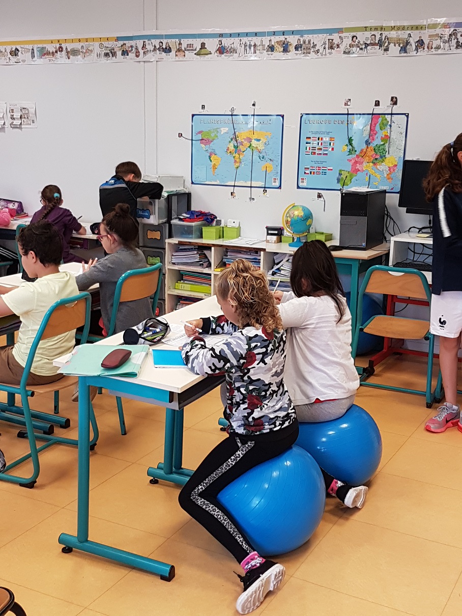 "On a apporté un nouveau matériel pour ceux qui en ont besoin", et pour tous les élèves dès qu’ils ressentent un besoin comme celui de s’isoler, de bouger en travaillant ou encore d’adopter une autre posture. Les élèves vont tester ce matériel, puis l’adopter ou au contraire préférer rester assis sur une chaise. C’est le cas par exemple de Gabin qui a testé d’autres assises mais préfère la chaise et le bureau : "c’est mieux pour travailler", alors que ses copains de classe mettent en avant le confort offert par la variété des assises. Si le plan de travail offre aux élèves une possibilité de choisir l’ordre dans lequel ils vont effectuer leur travail, la classe flexible leur présente un choix de confort pour mieux se concentrer. Léane, élève de CM1, reconnaît d’ailleurs qu’avoir le choix "c’est important : on travaille mieux et plus vite".